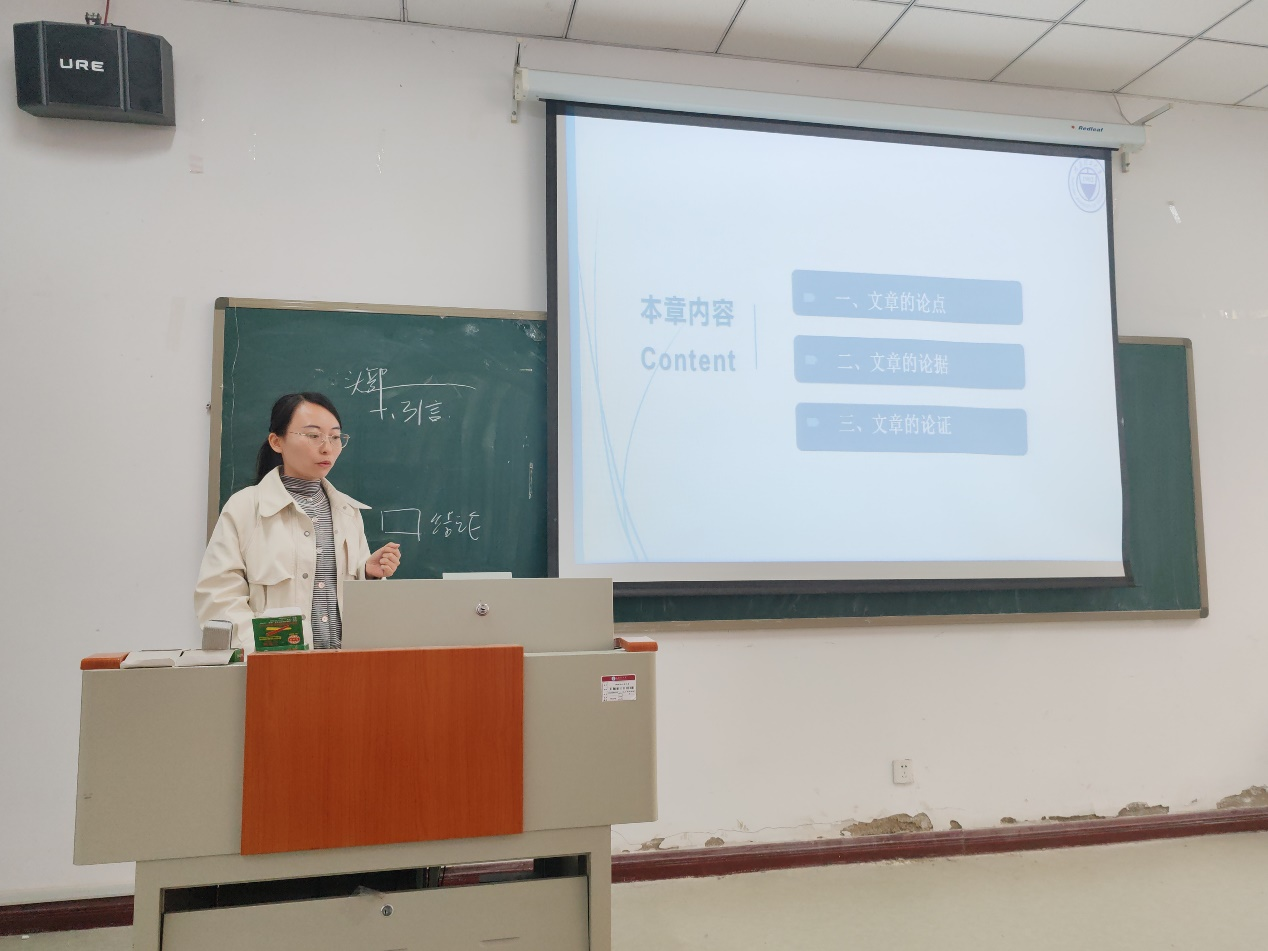 试讲活动中,三位教师分别展示了各自的教学风采。建筑与艺术学院的李艳老师以“文章的论证”为题,通过生动的案例和清晰的逻辑,深入浅出地讲解了论证的核心要点,展现了扎实的教学功底。软件学院的杨慧琳老师围绕“文献的检索”展开教学,结合现代技术工具,为学生提供了实用的检索技巧,课堂互动性强,内容贴近实际需求。同样来自软件学院的程文飞老师则以“文献综述”为题,系统性地讲解了文献综述的写作方法,教学内容严谨且富有启发性。