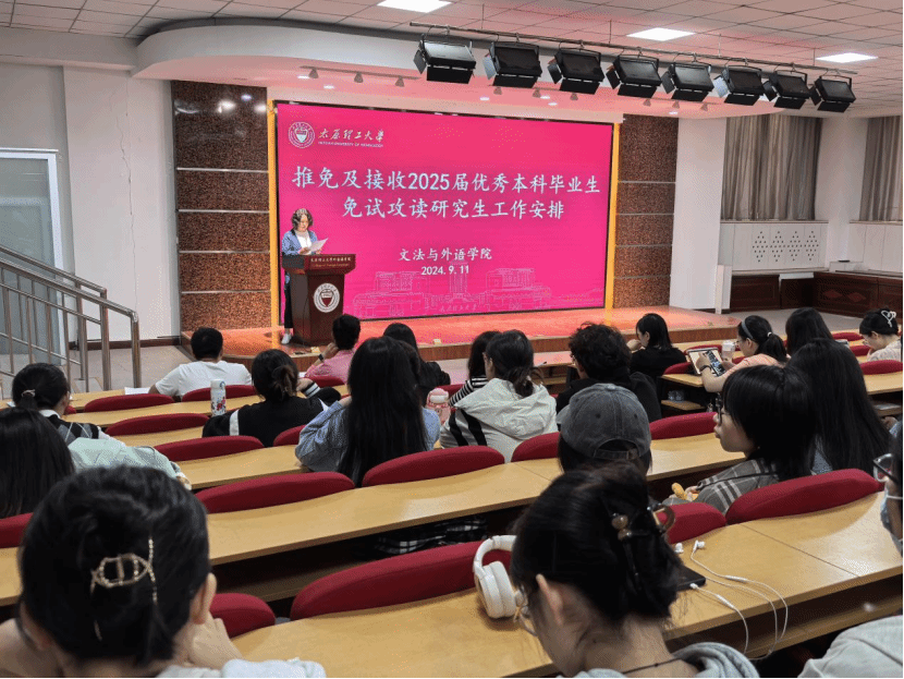 为贯彻落实学校关于2025届研究生推免工作,进一步加强学院学风建设,切实做好学院推荐免试攻读研究生工作,bat365正版唯一官网于9月13日在一层报告厅进行推免及接收2025届优秀本科毕业生免试攻读研究生工作安排。本次会议由bat365正版唯一官网院长段荣娟主讲,党委副书记杨雪芬、毕业生辅导员及全体2025届具有保研资格毕业生参会。