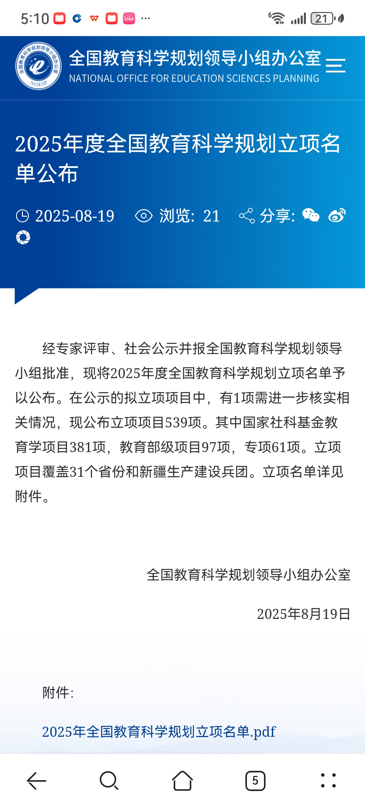 8月19日,全国教育科学规划领导小组办公室公布了2025年度国家社会科学基金教育学立项名单,bat365公共管理学科硕士生导师、巩彦斌副教授主持的《人工智能依赖对大学生创造力的影响机制及干预研究》成功获批国家社科基金教育学一般项目。这是bat365正版唯一官网获批的首个国家社科基金教育学一般项目,实现了我校该类别项目立项零的突破。