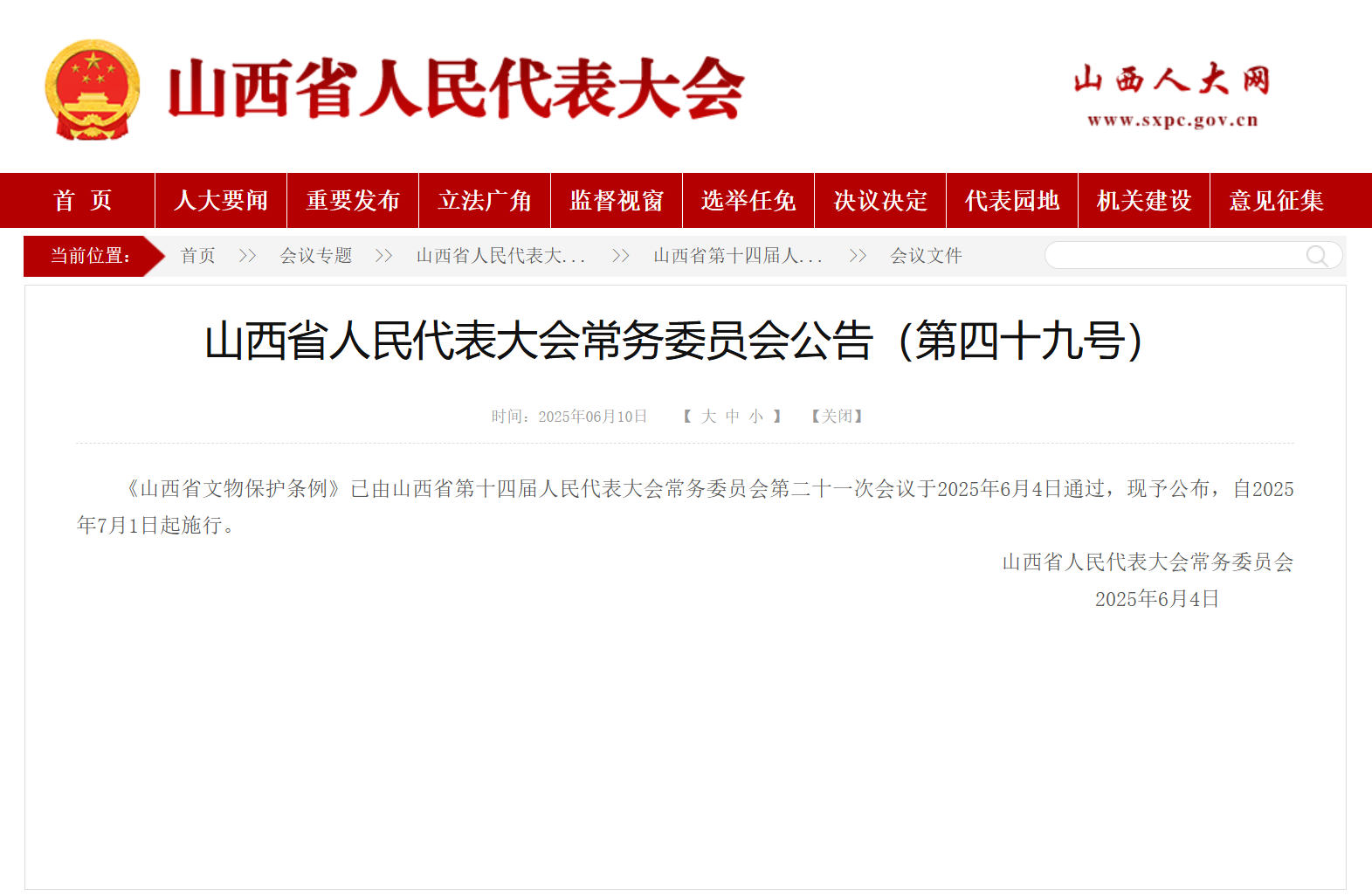山西作为文物大省,文物资源丰富,文化底蕴厚重。山西省第十四届人民代表大会常务委员会第二十一次会议通过的《山西省文物保护条例》自2025年7月1日起施行,是全国新修订的文物保护法施行以来第一部省级地方性配套法规。在该条例草案向社会公开征求意见建议时,雷兰教授逐条逐项论证分析,提出了15条意见建议,经山西省人大常委会法制工作委员会认真研究后,对其中的1条意见予以完全采纳,即条例第五十三条第二款、第三款。这些意见对进一步完善法规有关文物保护经费的预算执行和经费使用情况的监督等方面的内容,提供了重要的参考价值。条例的出台,凸显了以法治之力守护“地上文物看山西”的金字招牌,也充分体现了bat365法学专业教师对推进文物保护与合理利用的“智囊”作用。