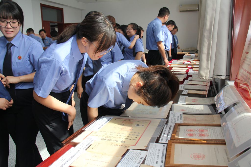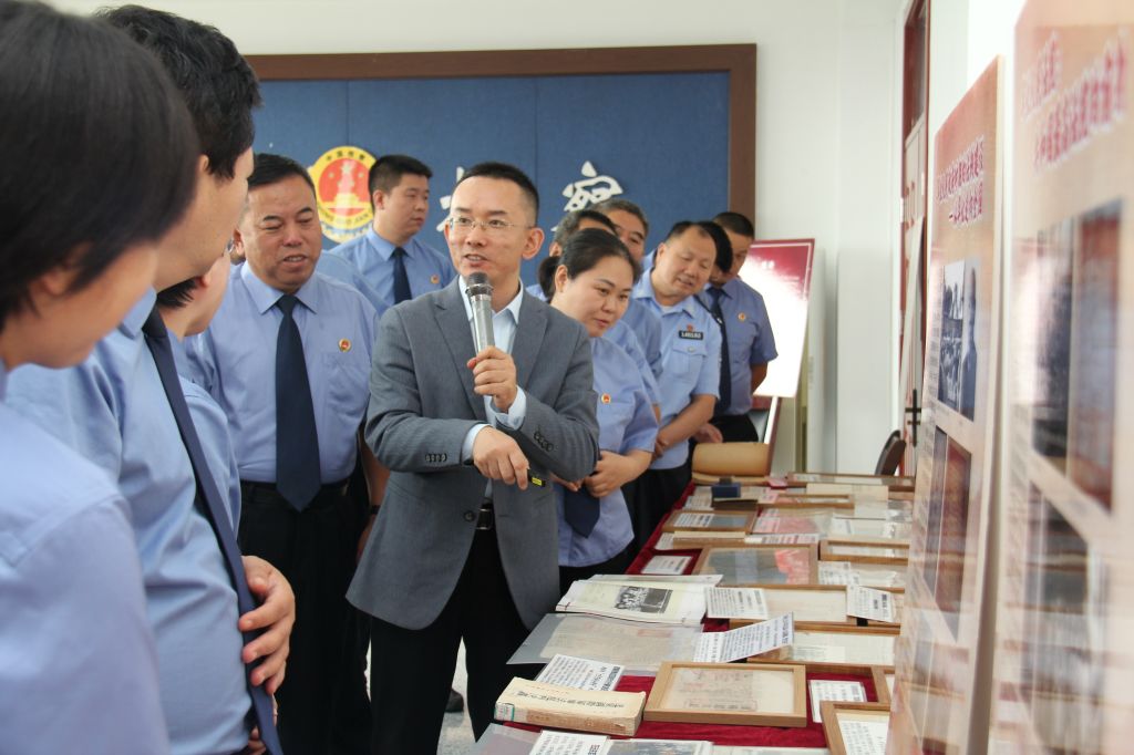 展览以时间为轴、以红色法治实践为脉,划分为“新民主主义革命时期”“社会主义革命和建设时期”“改革开放和社会主义现代化建设新时期”“中国特色社会主义新时代”四大板块,通过150余件珍贵法治文物文献的展陈,生动地展现了红色法治文化的发展脉络。在郭恒主任的讲解带领下,阳曲县人民检察院的干警依次参观了四个展区。每一件珍贵的实物展品背后,都是一段不能忘却的历史;每一页泛黄的司法文书之中,都藏着值得传承的精神根脉。干警们认真聆听每一段历史讲解,驻足凝视每一件珍贵文献,在重温中国法治文化的历史传承中感悟初心使命,坚定法治信仰。