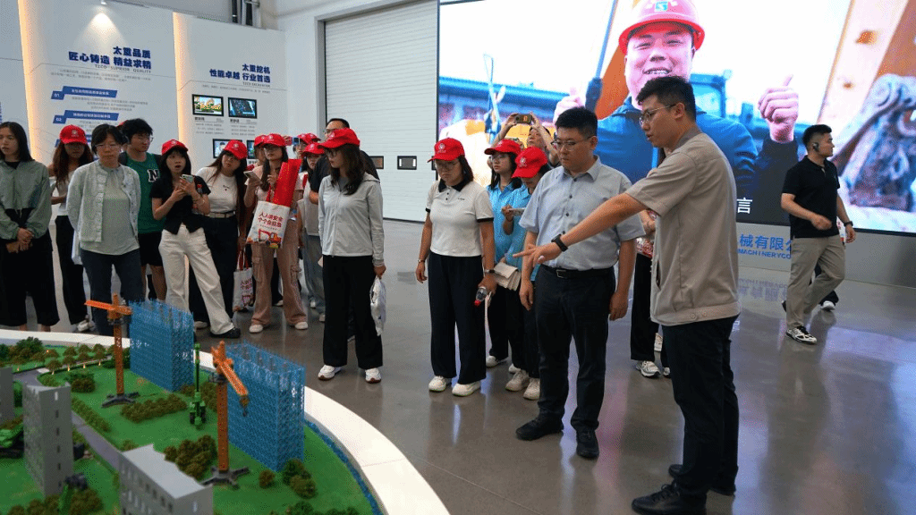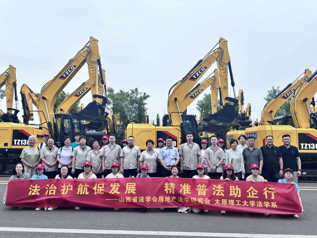 下午,师生们来到位于山西转型综合改革示范区的山西太重工程机械有限公司开展社会实践与公益普法活动。该企业专注于挖掘机械的研发、制造与销售,以“灯塔工厂”为目标,整合人工智能、5G+工业互联网等前沿技术,打造行业领先的智能制造体系。在讲解员的指引下,师生们首先参观了企业展示中心,近距离观察了涵盖燃油、纯电动、油电混合、氢能等多种动力类型的先进挖掘机产品。