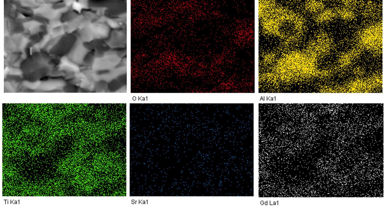 图3 掺杂SrTiO3复合陶瓷材料微观形貌、元素分布及吸波性能