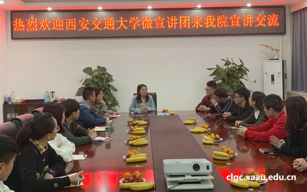 10月31日15:00,pp电子游戏官网特邀西安交通大学材料学院学生微宣讲团来pp电子作题为“弘扬西迁精神,厚植爱国情怀”的宣讲活动,宣讲会在阎良校区阶一报告厅举行,pp电子学生管理科科长雒亚男,全体辅导员、学生党员、团学干部和发展对象参加,会议由辅导员来东主持。