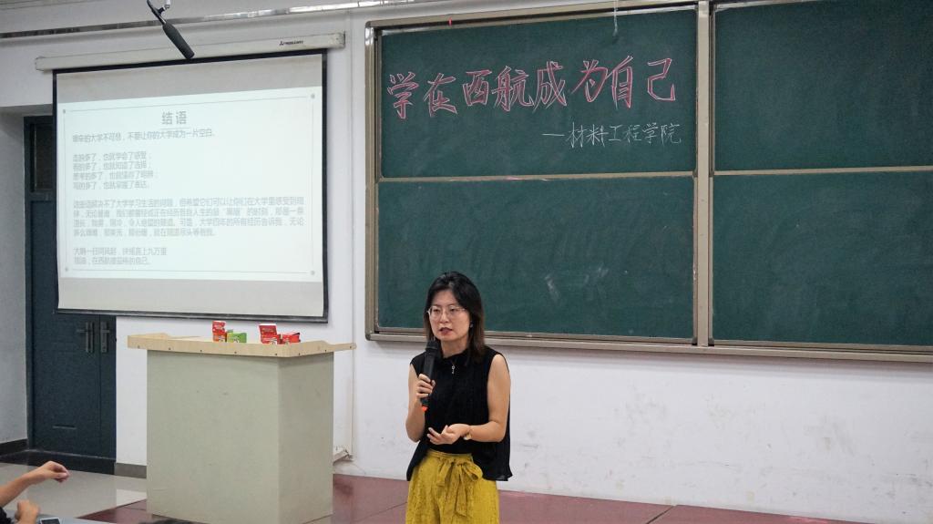 最后史倩茹对于本次会议做了总结,她告诫学生,不要虚度年华,务必要珍惜时光,努力让过自己想要的充实的大学生活,并以“大鹏一日同风起扶摇直上九万里”激励学生不断奋斗,创造辉煌。