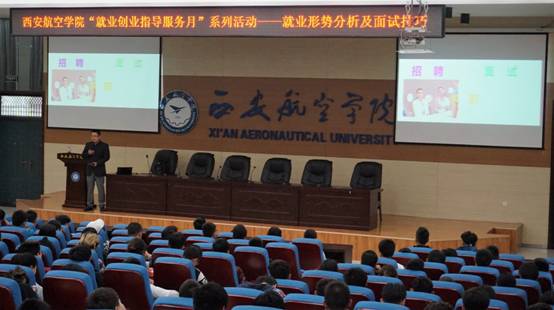 为了帮助同学们更好的了解就业形势、掌握面试技巧、赢取就业机会,pp电子于4月25日下午16:00在阎良校区阶梯一报告厅承办了西安航空学院“就业创业指导服务月”系列活动—就业形势分析及面试技巧专题讲座。