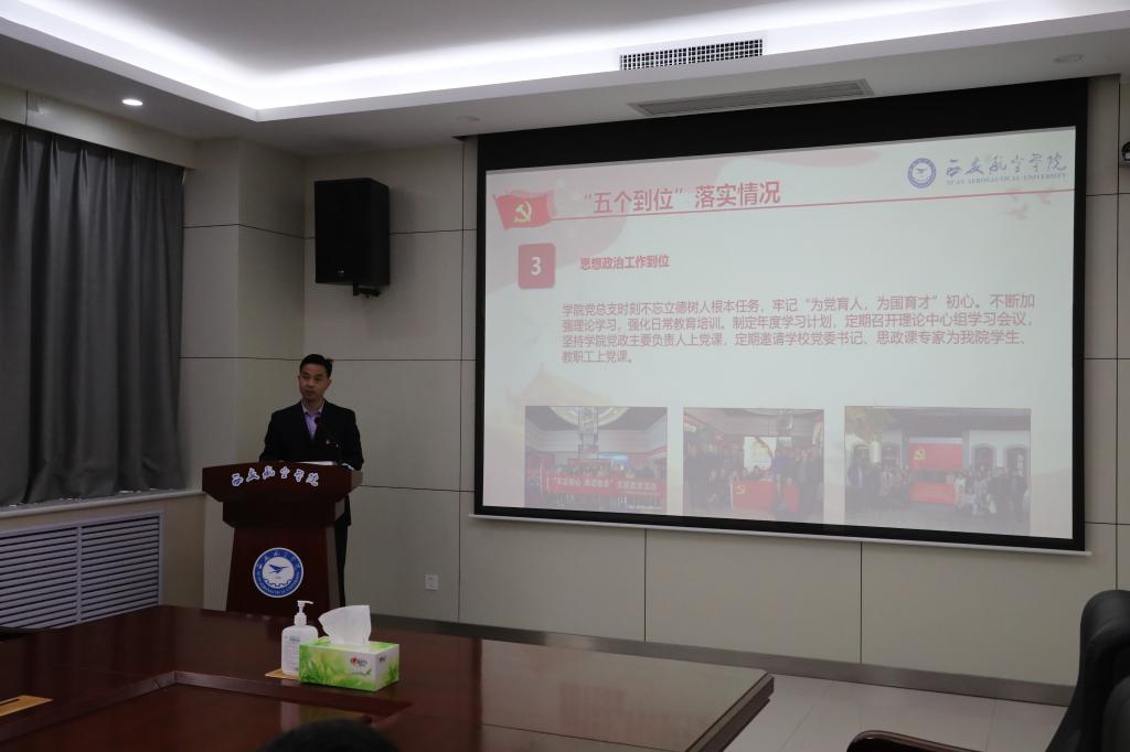 首先,王建斌书记对验收组一行的到来表示热烈欢迎,并就学校办学基本情况、党建工作建设情况、近年来党建取得的成果进行了介绍。宋文学副校长就学校新时代党建“双创”工作具体建设情况进行了详细汇报。