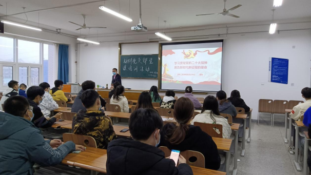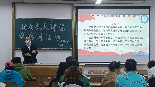 为了贯彻落实党的二十大精神,增强新时代大学生的责任感和使命感。11月27至29日,pp电子游戏官网党总支书记周华为材成、材科、复材三个学生党支部在4309教室召开题为“学习贯彻党的二十大精神,肩负新时代新征程的使命”的专题党课培训会,各支部全体党员、积极分子参加了培训会。