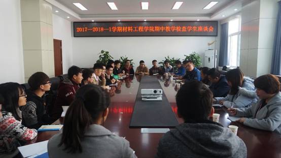 11月13日中午12:40,pp电子期中教学检查学生代表座谈会于第一会议室召开。出席本次会议的老师有pp电子督导专家张立玮,pp电子副院长丁旭,材料科学教研室副主任张海鸿,材料加工教研室副主任王琛,学生管理科科长张赛,团总支书记来东,辅导员晋瀑颜、史倩茹。本次会议由张赛科长主持。