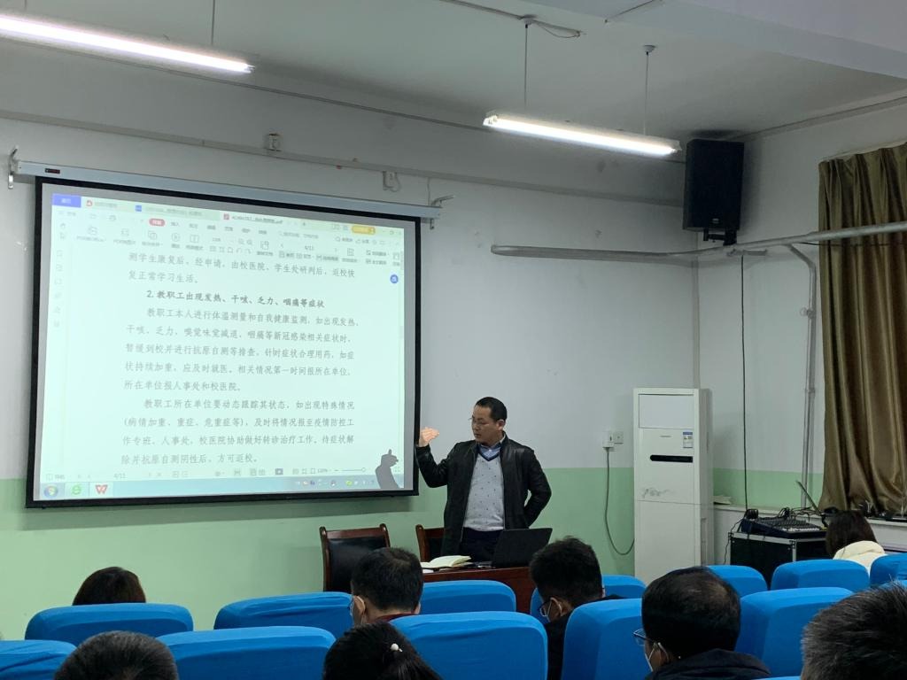 周华书记就学生工作,疫情防控工作,考风考纪要求进行了部署,主要包括:一、2月18日、19日省外、省内学生返校,学生科、班主任要对学生返校情况进行核实,并持续关注学生健康打卡情况,督促改善、维持学生宿舍卫生情况;二、疫情防控依然要按照学校要求,做好报备、应急处理工作,并带领全体教职工对学校第五版疫情防控处理预案进行了学习,他强调学院师生对近期流行的诺如病毒也要多加防范;三、开学考试周,任课教师要注意考前关注学生复习情况,考试前监考教师要严明纪律;四、大四学生就业工作需要大家持续关注,在就业信息、考研调剂信息、考研复试指导方面多帮助学生,鼓励学生先就业,再择业;五、各位教师要积极参加教学竞赛、带领学生参加学科相关竞赛,根据专业特长形成团队,优势互补;六、带领全体教师对习近平在学习贯彻党的二十大精神研讨班开班式上发表重要讲话进行了学习。