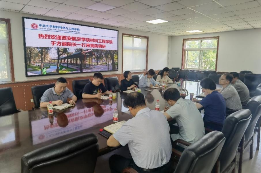 2023年6月14日,由pp电子游戏官网副院长于方丽带队,院长助理李兆、各专业教研室主任一行5人赴中北大学进行调研。中北大学材料科学与工程学院院长王强、副书记郭云霞、副院长李迎春以及各专业负责人参加了座谈会。