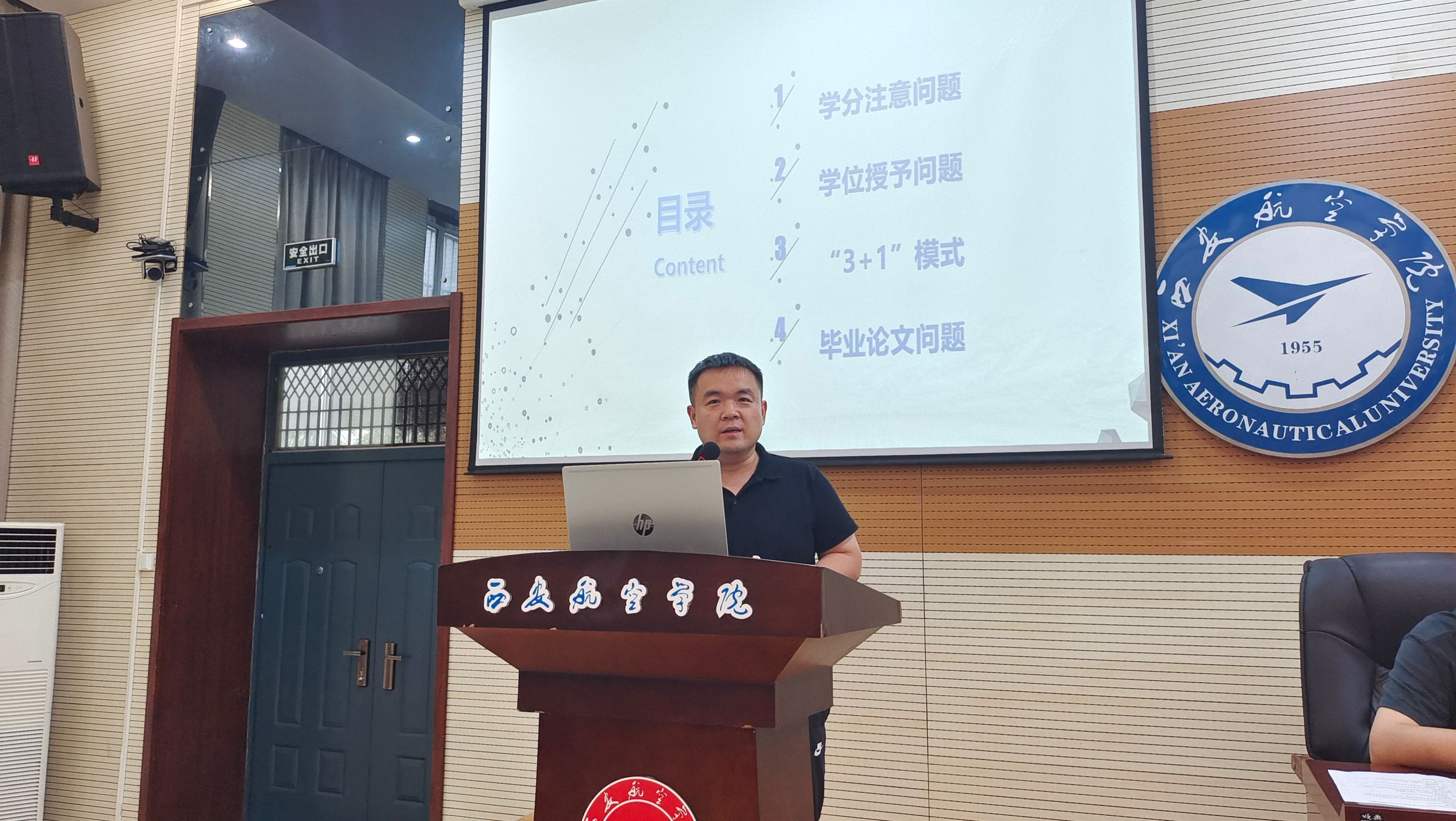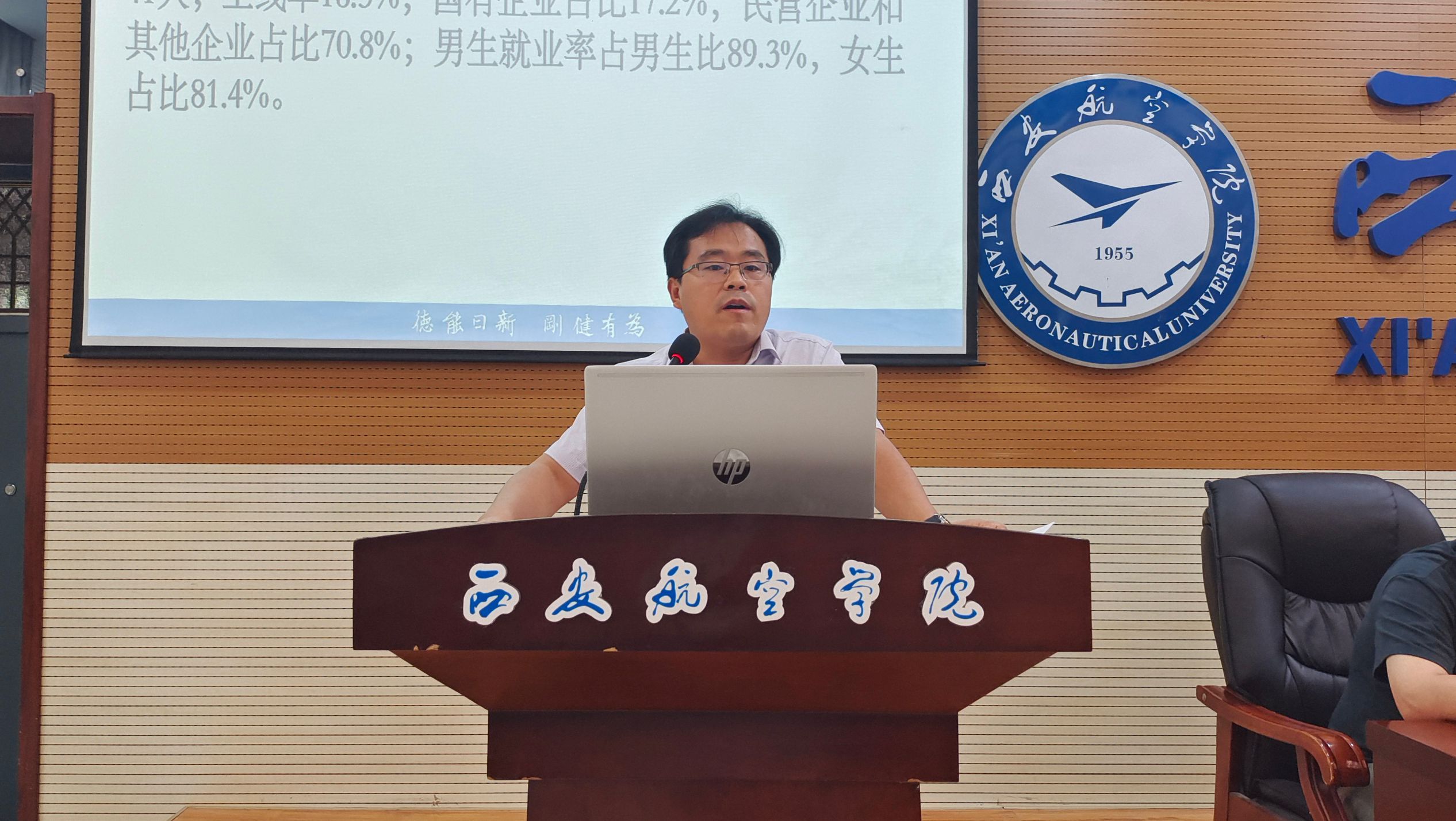 7月3日,pp电子在阎良校区报告厅召开2025届就业动员暨职业规划与简历大赛启动会。学院党总支书记严碧峰、院长于方丽、党总支副书记高均立、副院长李兆、学工办主任雒亚男、团总支书记张立家及2021级全体学生参加,会议由2021级辅导员史倩茹主持。