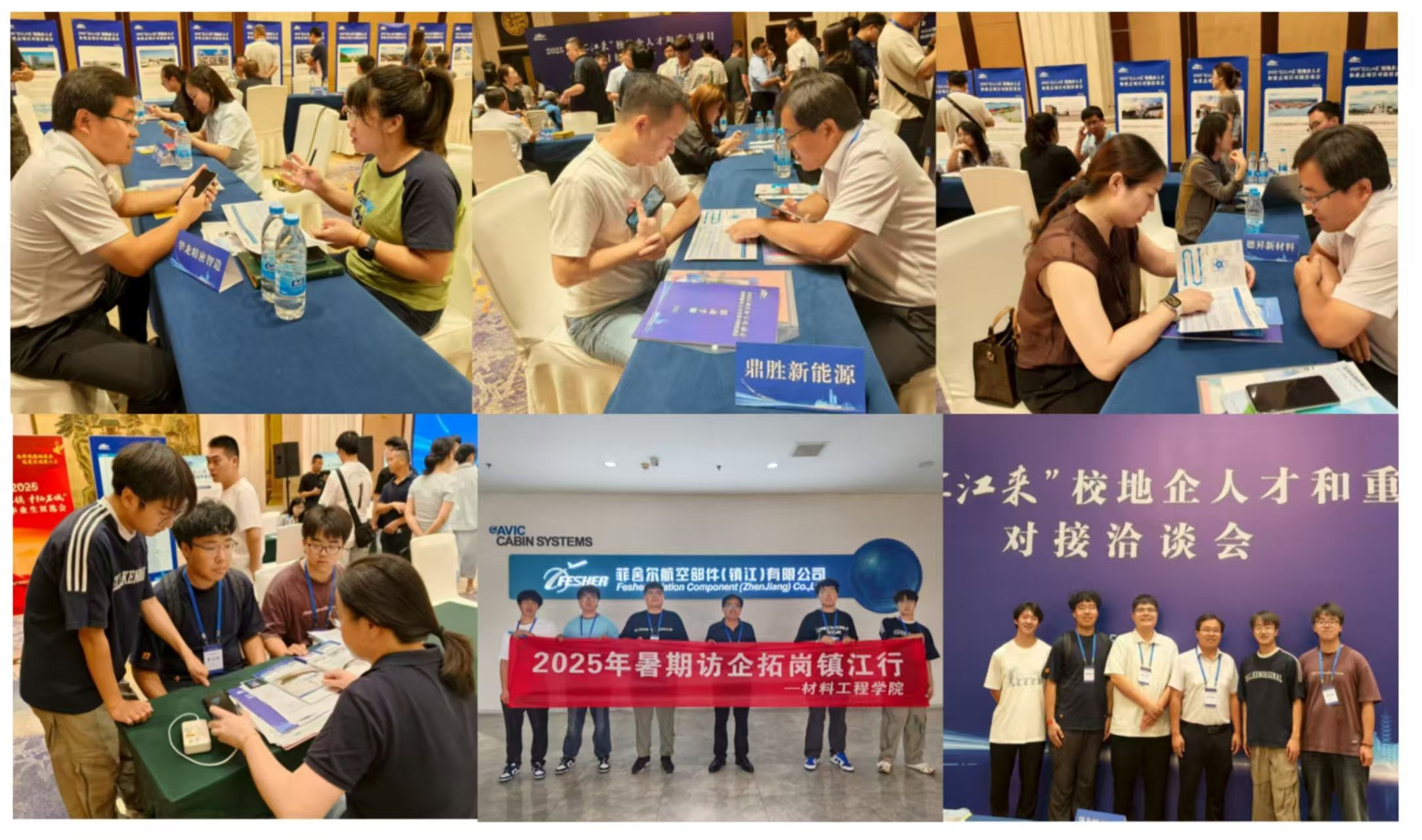 活动期间,师生深度参与“菁英汇镇 才栖名城”高校学生双选会,积极推介学院人才培养特色,现场与多家优质用人单位洽谈,助力学生精准对接镇江就业市场。重点走访了菲舍尔航空部件(镇江)有限公司、航天海鹰(镇江)特种材料有限公司、金东纸业(江苏)股份有限公司及孚能科技(镇江)有限公司,深入生产研发一线,详细考察航空复合材料部件制造工艺与特种材料应用场景,并就学生实习实训、技术合作、人才输送等议题与企业负责人进行了务实高效的深度对接,初步达成合作意向。