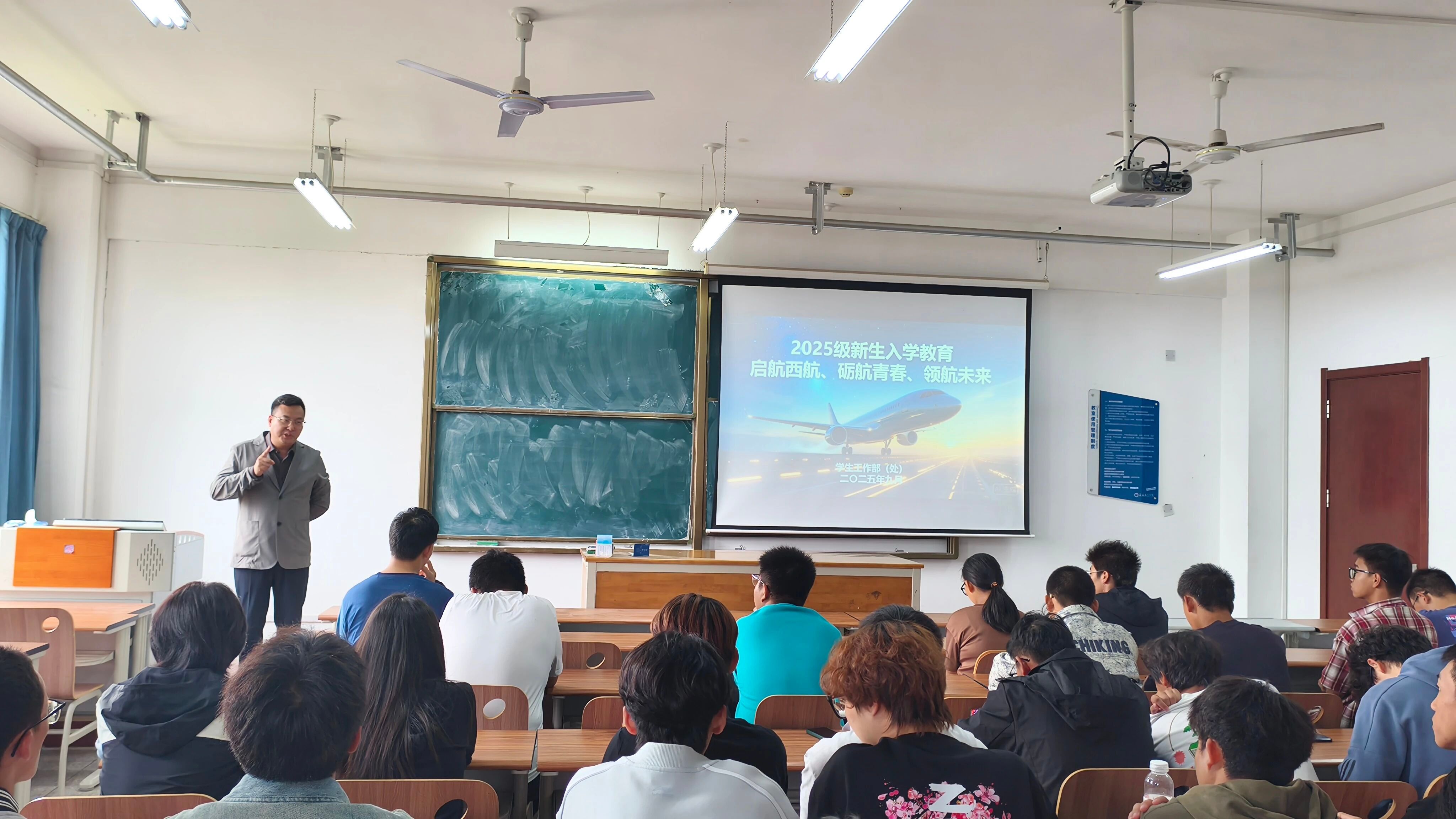下午第五节课,理想信念教育与校规校纪讲解同步进行。材成专业由学院党总支书记严碧峰主讲,从理想信念出发,为新生勾勒专业发展与人生规划的蓝图;材科与新材专业则由院党总支副书记高均立主持,细致解读教学管理规定;复材专业辅导员由雒亚男主讲,聚焦校规校纪,帮助新生树立规则意识,系好入学后的第一粒“纪律扣子”。