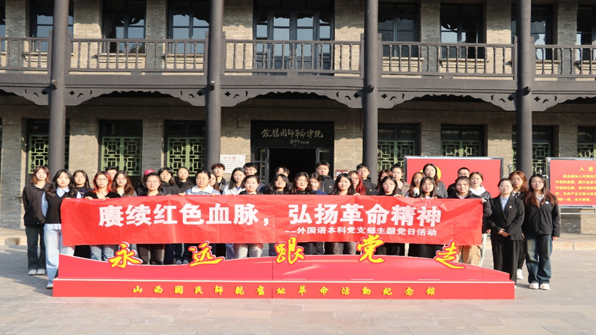 11月3日,bat365正版唯一官网外国语本科党支部全体党员满怀敬意,踏上了前往山西国民师范旧址革命活动纪念馆的征程,开展“赓续红色血脉,弘扬革命精神”的主题党日活动。本次活动旨在回溯中国共产党引领中华民族走向全国胜利、筹备新中国的辉煌历程,追溯历史足迹、缅怀革命先辈的丰功伟绩,将学习成果与党的二十届三中全会精神相结合,展望民族复兴的壮阔前景,激发全体党员在新时代的奋斗热情和使命感。