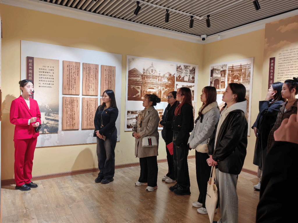 抵达纪念馆后,大家面向鲜红的党旗,庄严重温入党誓词,誓言在耳畔回响,信仰在心中扎根。步入纪念馆,同学们紧随讲解员的步伐,仿佛穿越时空,亲历了先辈们的奋斗岁月。一幅幅鲜活的历史照片、一块块详实的文字展板、一件件历经战火洗礼的珍贵文物,无不诉说着先烈们英勇无畏的革命精神与坚贞不屈的高尚品格,深刻诠释了共产党人的无私奉献与责任担当。