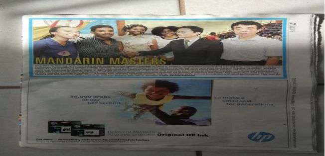 2017年5月29日,孔院中方院长于万锁的照片刊登在《牙买加观察家报》上。
